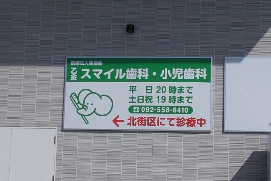 スマイル歯科イオン乙金外壁サインシート貼工事